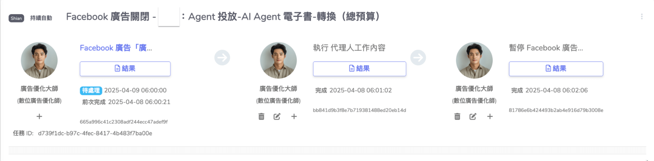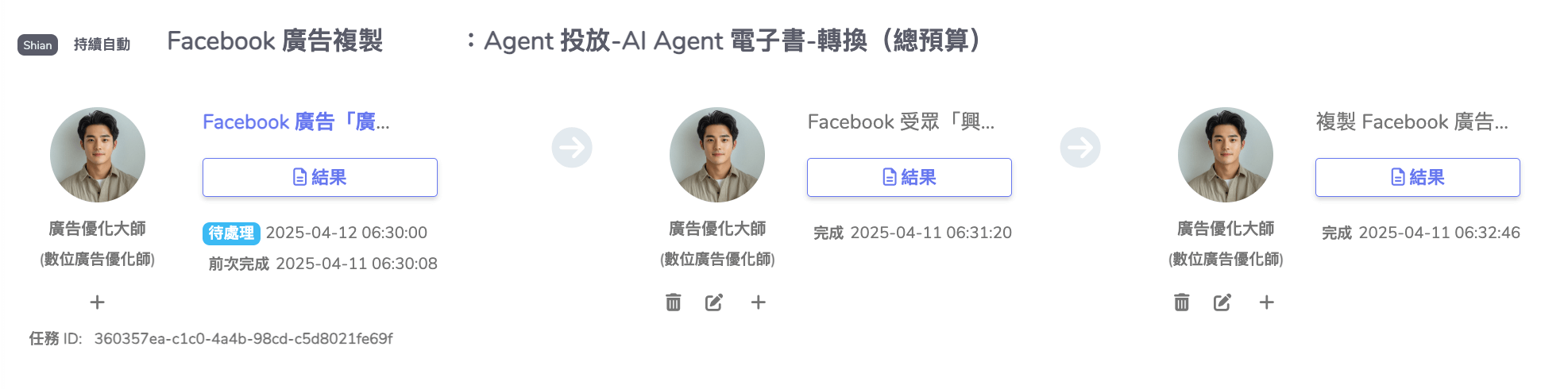按「送出」按鈕,複製廣告組合的工作流即完成,如下圖: