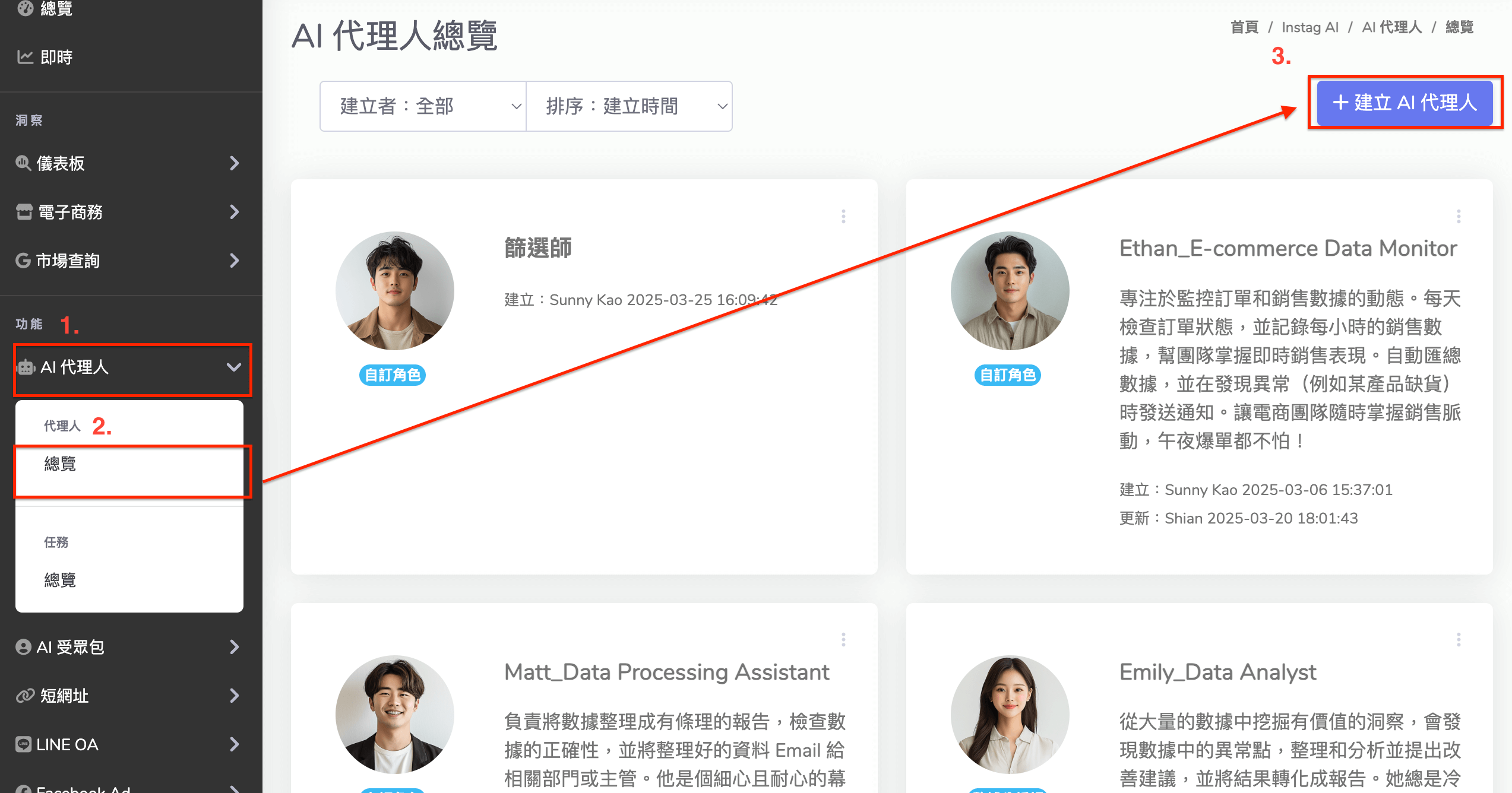 - 側邊欄點選「AI 代理人」